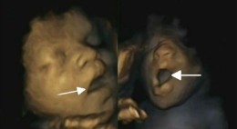 O feto a abrir a boca (à esquerda) e a bocejar, numa imagem captada pela equipa britânica