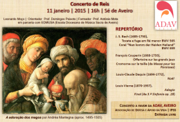 Em parceria com a EDMUSA, a ADAV Aveiro promove mais uma vez o Concerto Solidário de Reis. Dia 11 de janeiro – Sé de Aveiro,16h. Leonardo Moço tocará peças de J. S. Bach (1685-1750), François Couperin (1668-1733), Louis-Claude Daquin (1694-1772) e de Louis Vierne (1870-1937). O Concerto é gratuito, mas contamos com a generosidade de todos os que puderem levar bens essenciais para bebés: papas, leites e fraldas. Agradecemos a vossa presença e divulgação do evento junto dos vossos amigos.